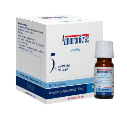 آمورونیک یک محلول موضعی ضد قارچ ناخن حاوی آمورولفین ۵٪ است که برای درمان اونیکومایکوزیس (عفونت قارچی ناخن) ناشی از درماتوفیتها، مخمرها و کپکها استفاده میشود. این محصول با نفوذ بالا به بستر ناخن، ماندگاری مناسب و مقاومت در برابر شستوشو، گزینهای مؤثر برای درمان طولانیمدت قارچ ناخن دست و پا است.