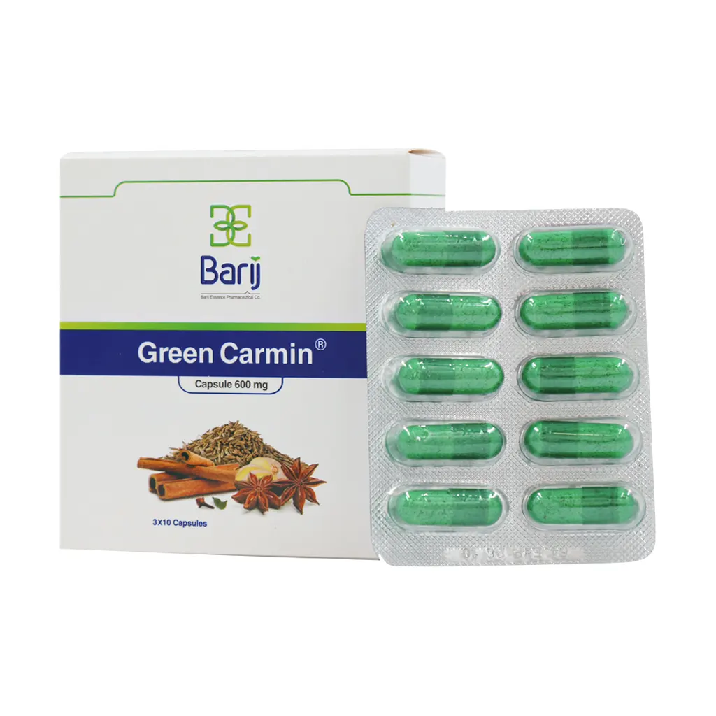 کپسول گرین کارمین باریج اسانس یک فرآورده گیاهی برای تسکین دردهای شکمی و کاهش علائم سندرم روده تحریکپذیر است. این محصول با ترکیب گیاهان دارویی مؤثر، به کاهش نفخ، درد و ناراحتیهای گوارشی کمک میکند.