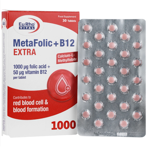 قرص متافولیک پلاس ب12 اکسترا یوروویتال مکملی تخصصی برای تأمین نیاز روزانه بدن به فولیک اسید فعال (کلسیم ال-متیل فولات) و ویتامین B12 است. این ترکیب برای پیشگیری از کمخونی، تقویت سیستم ایمنی، بهبود عملکرد عصبی و حفظ سلامت قلب و عروق بسیار مؤثر بوده و مناسب برای گیاهخواران نیز میباشد.