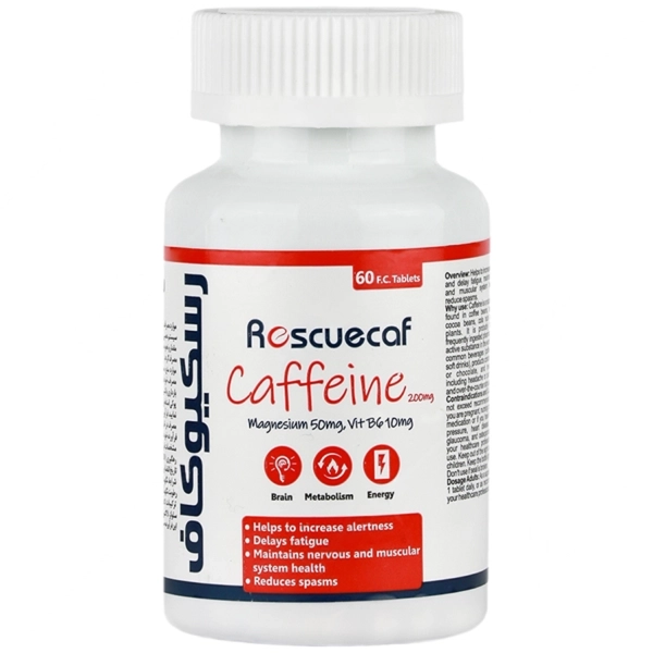 قرص کافئین + منیزیوم + ویتامین ب6 رسکیوکاف – 60 عددی