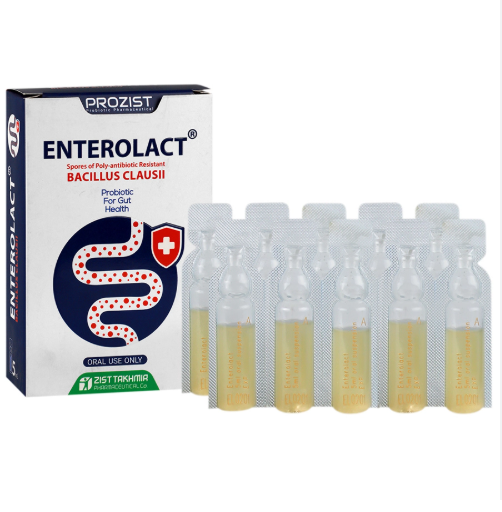 اینترولاکت یک مکمل پروبیوتیک به فرم ویال خوراکی حاوی اسپورهای مقاوم باسیلوس کلاوسی (Bacillus clausii) است که برای درمان اسهال حاد عفونی، اسهال ناشی از مصرف آنتیبیوتیک و تنظیم میکروبیوم روده کاربرد دارد. این محصول مناسب برای نوزادان، کودکان و بزرگسالان بوده و به تقویت سیستم ایمنی و تولید ویتامینهای گروه B نیز کمک میکند.