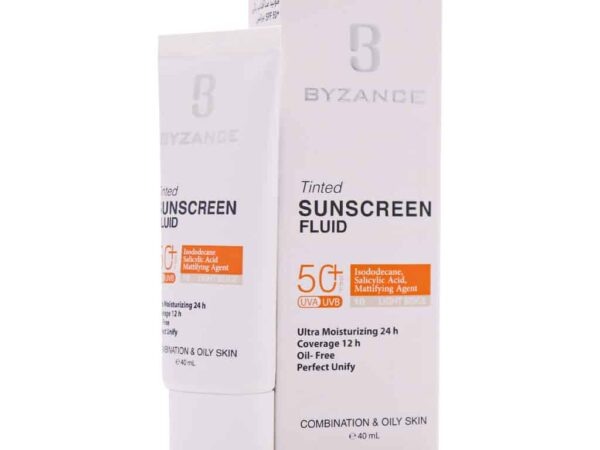 فلوئید ضد آفتاب کرم پودری +SPF50 مناسب پوست مختلط و چرب بژ روشن بیزانس – 40 میلی لیتر