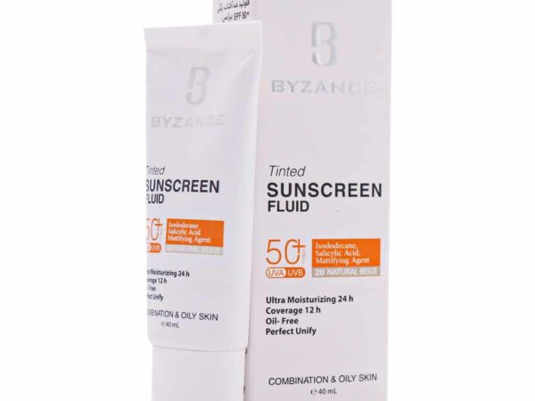فلوئید ضد آفتاب کرم پودری +SPF50 مناسب پوست مختلط و چرب بژ طبیعی بیزانس – 40 میلی لیتر
